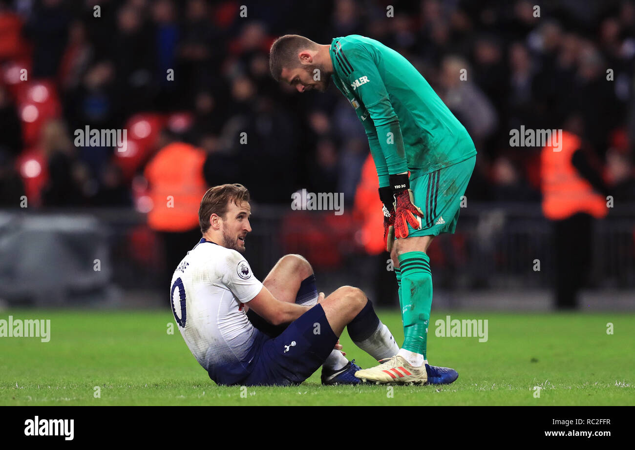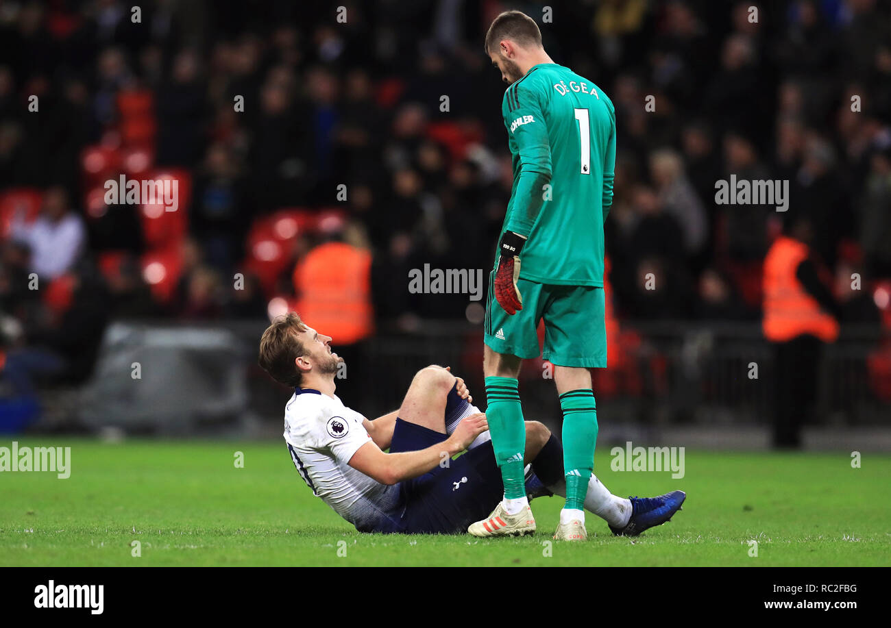 Tottenham Hotspur Ist Harry Kane Links Liegt Wie Manchester United Torwart David De Gea Kontrollen Auf Ihn Verletzt Nach Der Premier League Match Im Wembley Stadion London Stockfotografie Alamy